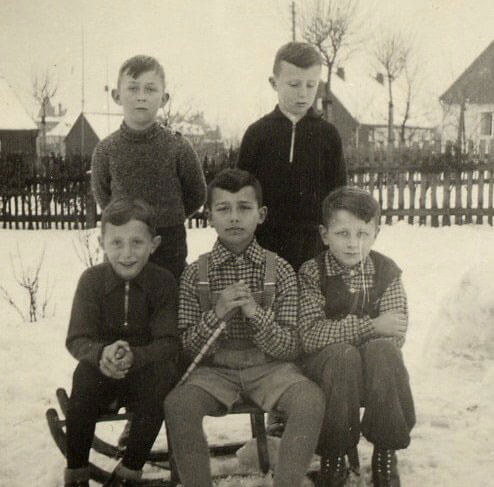 I was born in the town of Chemnitz in South East Germany. I do not recollect my very early years but in 1933 my father lost his job in Chemnitz and we moved to a small town called Neukirchen, about five miles from Chemnitz. My parents bought a semi-detached house with a large piece of ground attached, probably about one and a half acres. As I remember my father took on any type of work available: driving, painting, road building etc and life for my sister and I was quite normal. Our household consisted of my paternal grandfather, my father, my mother, my sister and myself. On our piece of ground we kept a goat which supplied milk, we kept hens which supplied the eggs and while my father was working my mother and grandfather worked on our land. We grew our own vegetables and had an orchard with various fruit trees.